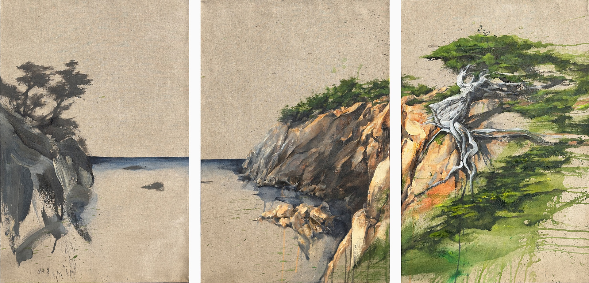 $4,000 Big Sur Rocky Point 22" x 48" Acrylic Ink and Mediums on raw Belgian Linen.